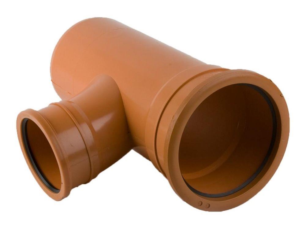 Designed for larger capacity drainage systems, this 160mm to 110mm 87.5° double socket branch allows a 110mm line to connect into a 160mm underground drain. The 87.5° branch angle creates a near-vertical connection point—useful for tying in vertical stacks or additional inlets into a main run.