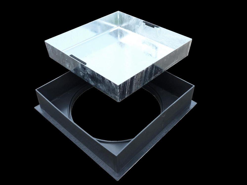 Rated to 10 tonne GLVW, this access cover is suitable for pedestrian areas and locations subject to occasional light vehicle loading, such as domestic driveways, paved access routes, patios, and landscaped spaces. The galvanised steel infill tray delivers reliable strength and protection against corrosion, while the lightweight polypropylene frame offers a rust-free, low-maintenance alternative to traditional steel frames. The 450 × 450mm clear opening provides practical access for inspection and maintenance tasks.
