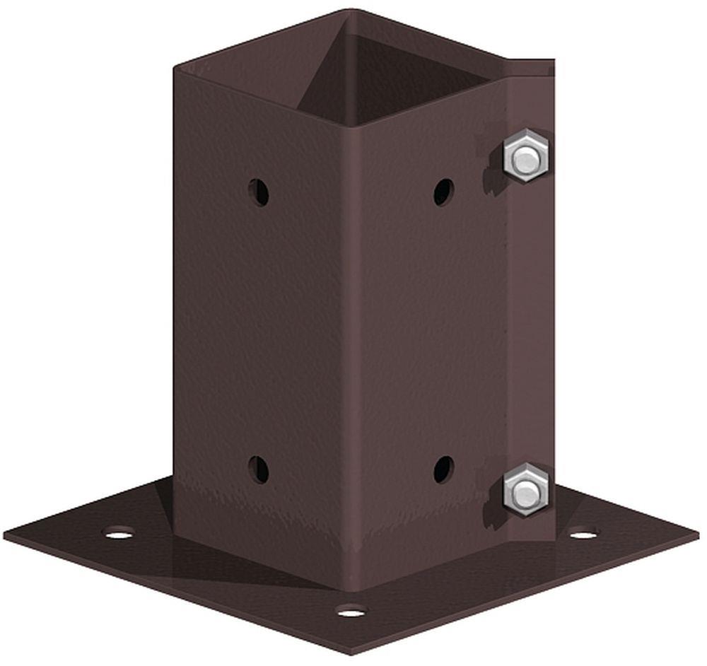 The Swift Clamp Bolt Down Post Support 3" x 3" (75mm x 75mm) Brown is a heavy-duty steel fixing solution designed to securely anchor timber fence posts onto solid surfaces such as concrete bases, patios and decking areas. Engineered to suit standard 75mm x 75mm (3" x 3") wooden posts, this clamp-style support provides strong, stable post positioning without the need for ground excavation.