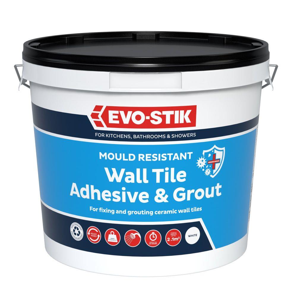 Evo-Stik WALL TILE ADHESIVE & GROUT MOULD RESISTANT White (D2TE) Standard is a combined wall tile adhesive and grout designed for fixing and finishing ceramic wall tiles in one convenient system.