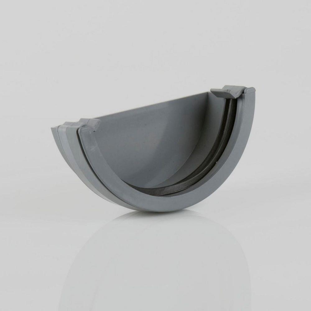 The Roundstyle external stopend seals the outer end of a 112mm half-round gutter, preventing rainwater leakage while providing a clean and finished appearance along the roofline.
